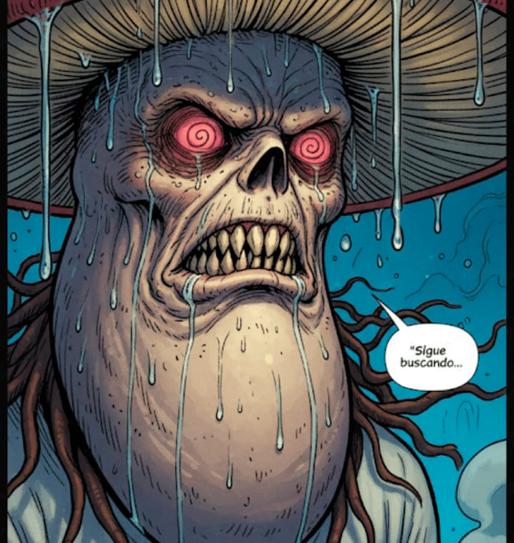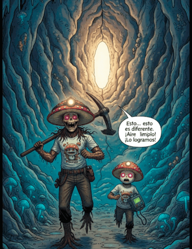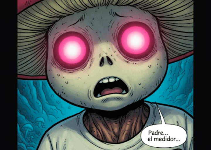 El chico hongo levantó su medidor electrónico, que había estado en silencio durante horas. La aguja temblaba y emitía un pitido débil, pero constante.