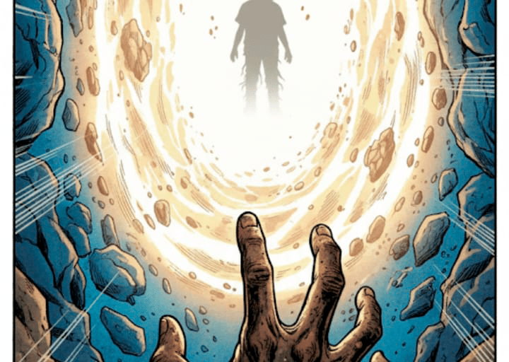 El portal, que había estado emitiendo una fuerza de atracción, lo absorbió con una fuerza irresistible. El hijo hongo gritó, su voz se perdió en el rugido del portal, mientras era arrastrado hacia el otro lado.