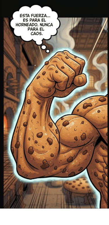 Luego, sin decir una palabra, volvió al horno. El calor era su medicina. Se quedó quieto, sintiendo el abrazo sanador de la temperatura, hasta que la masa cruda se endureció, se doró y se convirtió en una cicatriz de galleta perfectamente integrada. Una vez más, estaba completo.